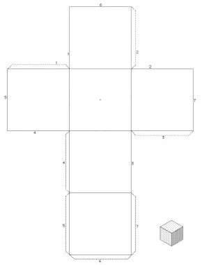 5 figuri ‘nobile’ – Plan hexaedru – (doar schita – pentru printat) << Prima pagina Plan tetraedru >> Plan hexaedru >> Plan octaedru >> Plan dodecaedru >> Plan icosaedru >>